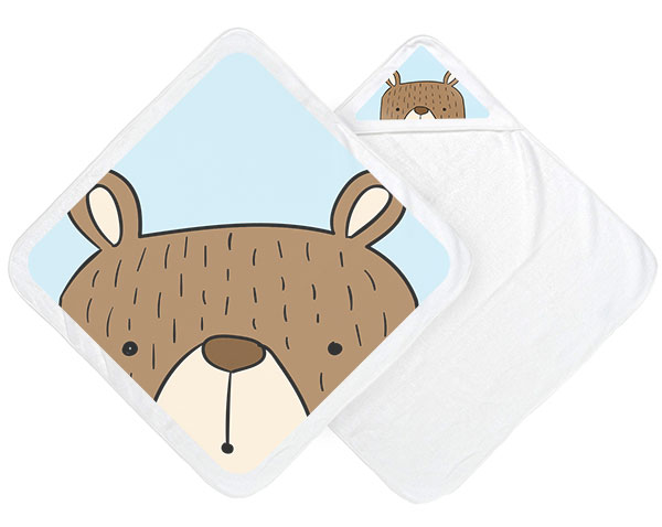 Detská osuška s vlastnou potlačou. Skvelý darček pre bábätká a najmenšie deti. Môžete na ňu natlačiť rodinné spomienky alebo hravé motívy, ktoré u nás nájdete (od roztomilých zvieratiek až po obľúbených rozprávkových hrdinov), alebo jednoducho meno vášho dieťatka. Originálnou detskou osuškou urobíte dojem nielen na malého plavca, ale aj na všetkých okolo. Hodí sa ako na bežné kúpanie, tak aj na bazénik alebo pláž. Tlačiť navyše môžete nielen na vonkajšiu stranu osušky (tú, ktorú vidíte, keď je bábätko zabalené), ale aj na ohnutý vinkel, ktorý slúži ako kapucňa.