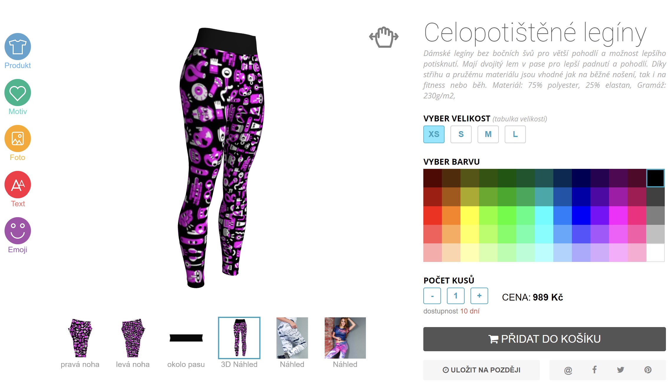 Aby si každý mohl navrhnout své vlastní legíny, vytvořili jsme unikátní aplikaci pro navrhování legín - "Návrhář". Připrav si požadovaný obrázek / fotku či text, nahraj do našeho návrháře a správně umísti na levou a pravou nohavici a je hotovo. V aplikaci rovnou uvidíš, jak legíny budou vypadat. O zbytek se už stará náš tvůrčí tým a ty se můžeš těšít, až ti domů přijde balíček s opravdu jedinečnými fullprintovými legínami. Proč si neobléknout třeba vesmírnou hvězdokupu, veselé lentilky, donuty nebo decentní tapetu s jednobarevným vzorkem? Volba je jen na tobě, překvap nás svým návrhem!