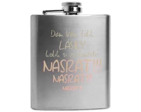 Nerezová ploskačka, rozmery: 125x95x20 mm, objem: 237 ml. S gravírováním.