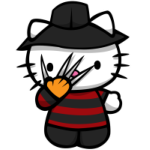 Mačička Hello Kitty v novom kabáte! Tentoraz ako Freddy Krueger z hororovej série Nočná mora v Elm Street. Skvelý motív na tričká a iné darčeky.