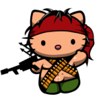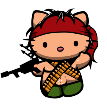 Mačička Hello Kitty v novom kabáte! Tentoraz ako Rambo. Skvelý motív na tričká a iné darčeky.