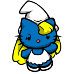 Mačička Hello Kitty v novom kabáte! Tentoraz ako Šmoulinku. Skvelý motív na tričká a iné darčeky.