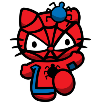 Mačička Hello Kitty v novom kabáte! Tentoraz ako komiksový hrdina Spiderman. Skvelý motív na tričká a iné darčeky.