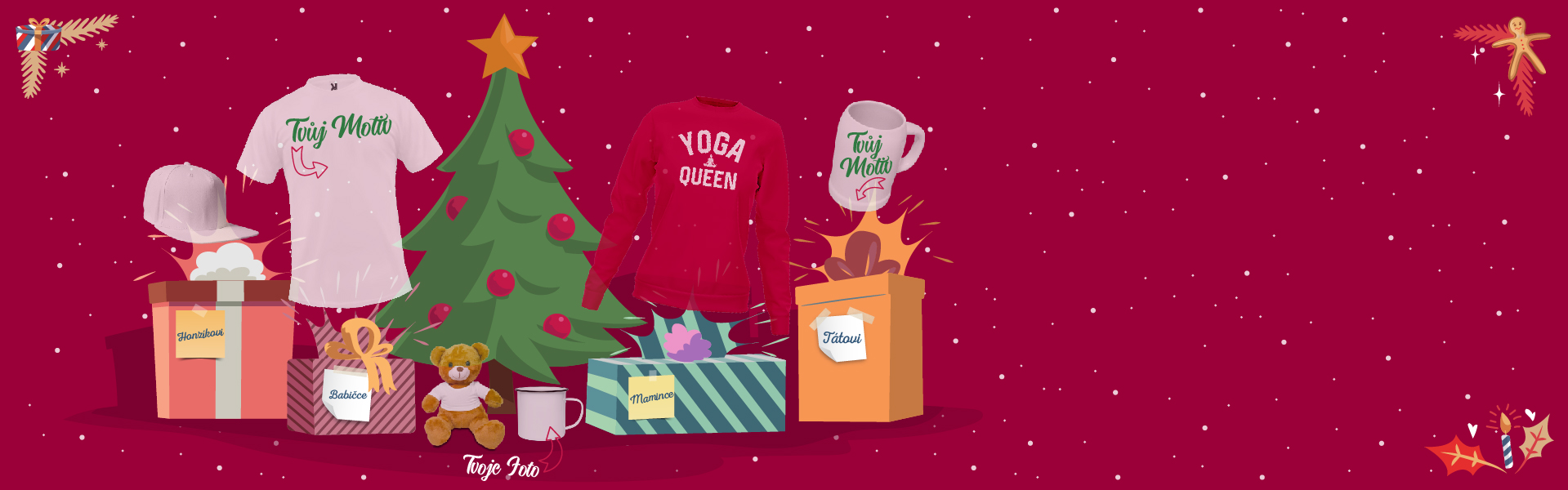 Pripravili sme pre teba vianočné designy. Vlož ich na svoj darček, alebo si navrhni vlastnú jedinečnú potlač. Vyberať môžeš z viac ako 170 darčekov.